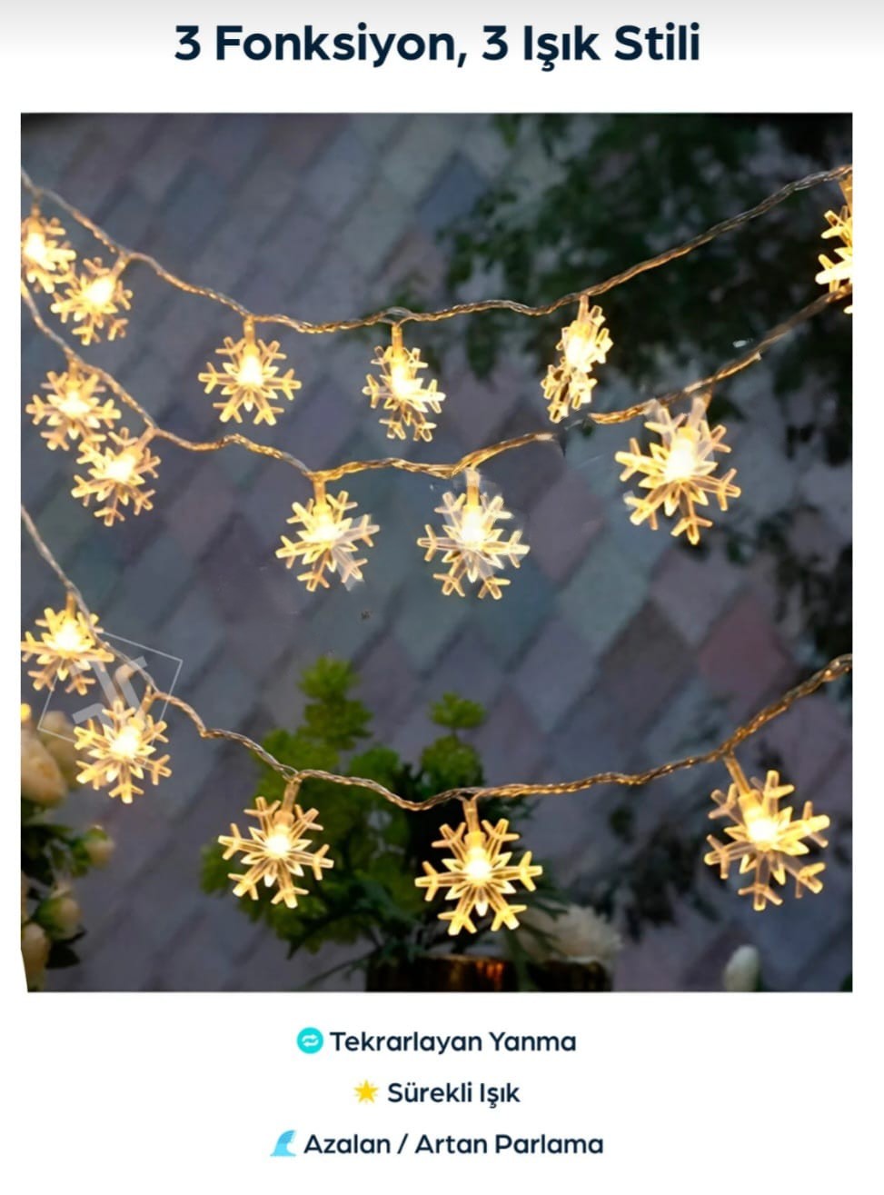 Kar Tanesi Led Işık Aydınlatma Pilli 5 Metre